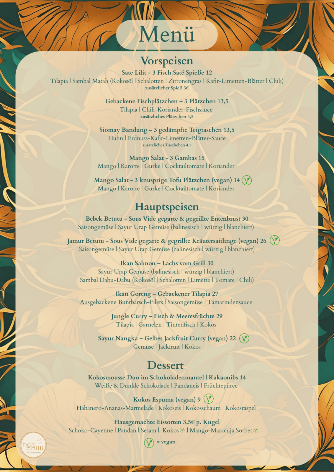 Mittwoch bis Sonntag ab 17:00 Uhr a la carte, und Sonntags mit unserem kreativen BALI BRUNCH von 9:30 bis 14:00 Uhr.